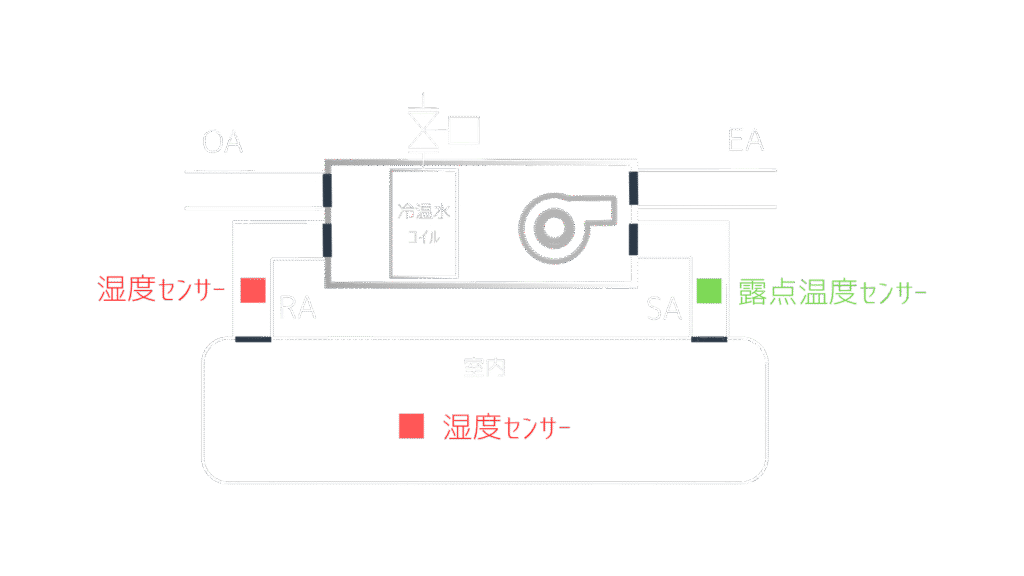蒸気式加湿器を搭載した空調機では、給気ダクトに露点温度センサーを設置することがあります。
